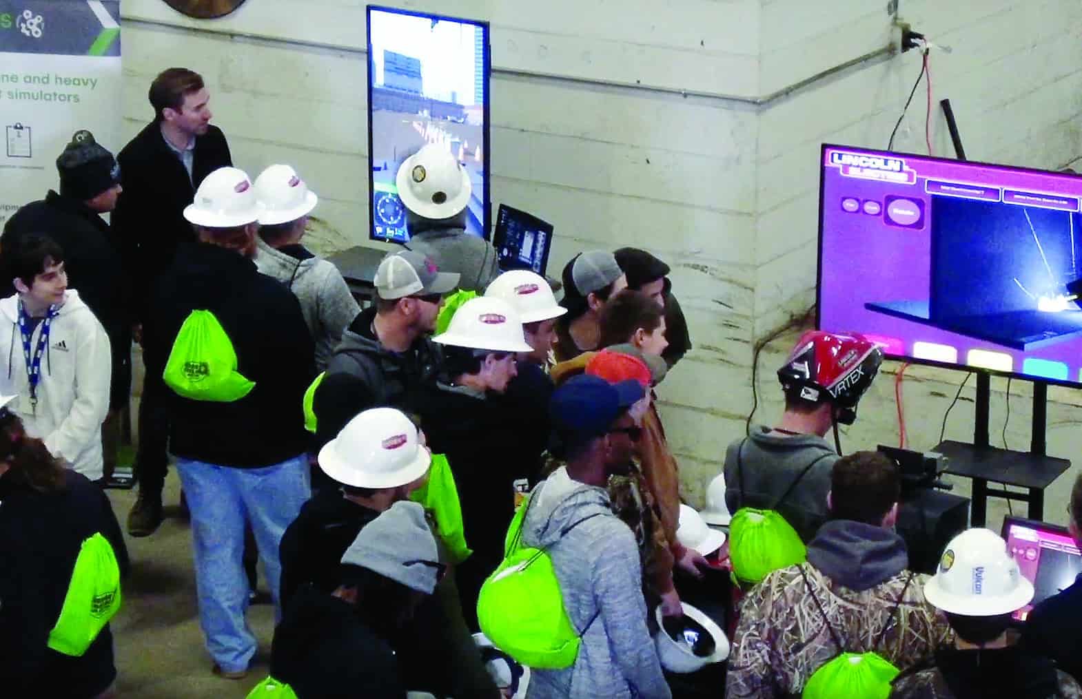 Key to the success of the program is that students see live equipment demonstrations and hear personal stories from company employees about their own career trajectories as the students rotate through multiple learning stations. Some of the most popular learning stations include simulators, such as the Vortex crane simulator provided by CM Labs, a chain falls Minute to Win It style competition, and the chance to climb into the cab of trucks and cranes.